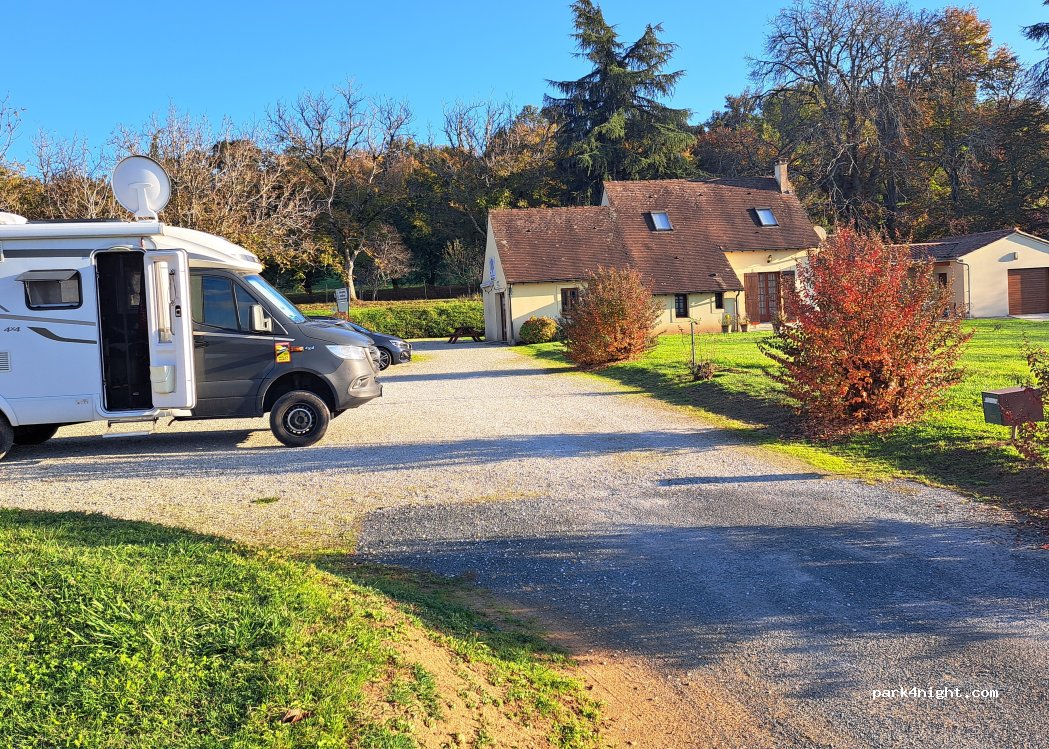 Superbe accueil, possibilité de garer quelques camping-cars seulement car le parking sert aussi à recevoir les hôtes pour la table. Possibilité d'acheter des produits du terroir (canard, vin...) pêche possible à proximité dans un cadre magnifique Avec vue sur le château de Montfort. Je recommande fortement
