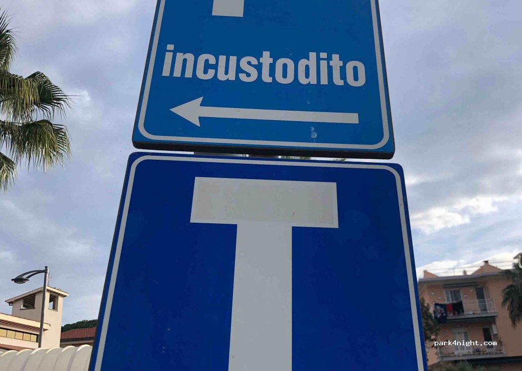 È un parcheggio molto tranquillo non ha nessun servizio però dall’altra parte della strada c’è un’area per i cani e si trova a poco più di 1 km dal centro di Bordighera. È una zona residenziale quindi è molto tranquilla.