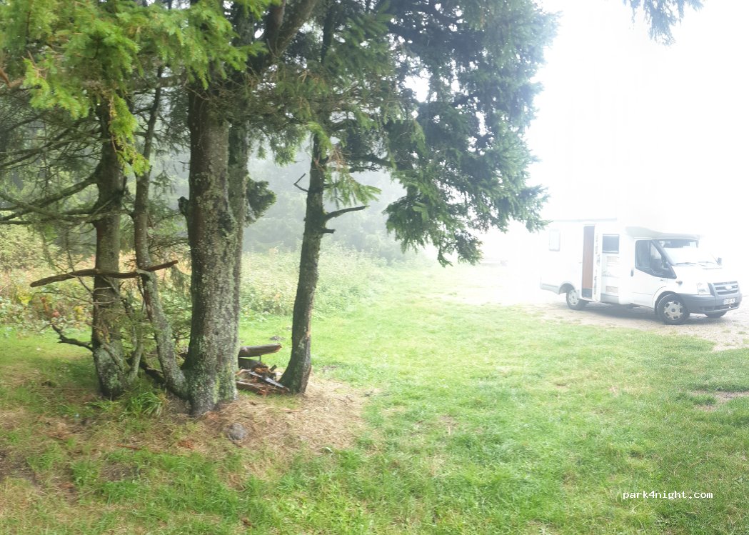 Spot nature avec passage de randonneurs et plusieurs camions, mais assez grand pour être au calme. Pratique pour partir en randonnée. Malheureusement la lisière de forêt sert de toilettes, s'il vous plaît faites vos affaires proprement !