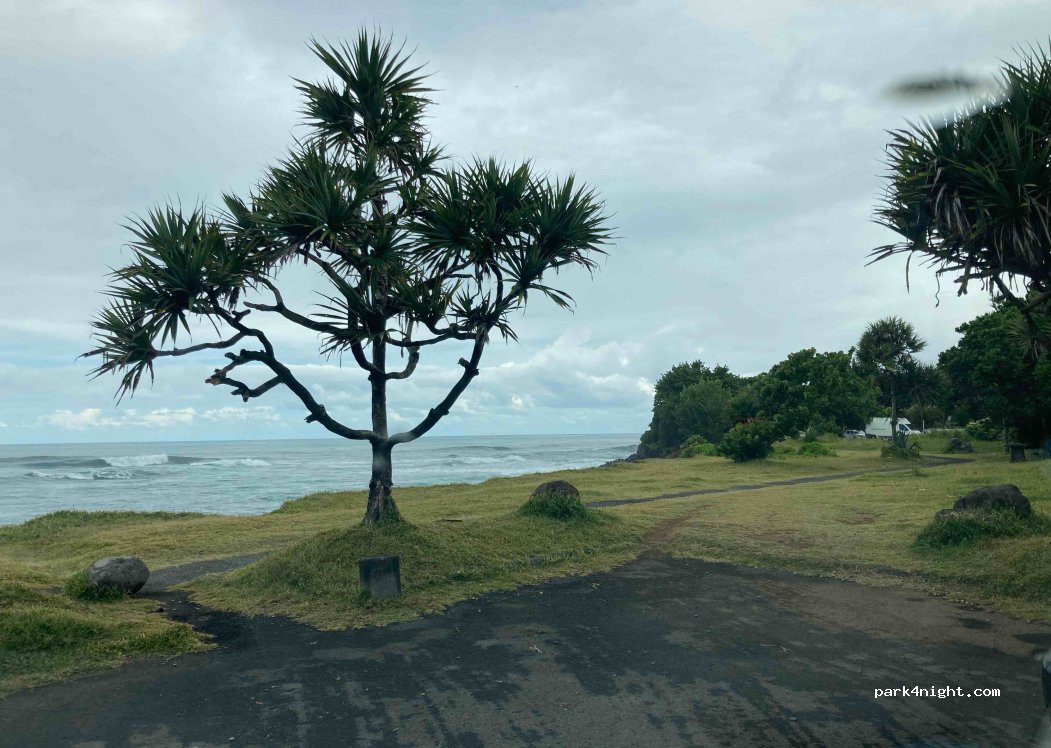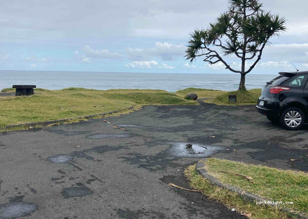 Kleiner Aussichtspunkt mit 3,4 Stellplätzen. Bänke mit Blick auf den Ozean.
