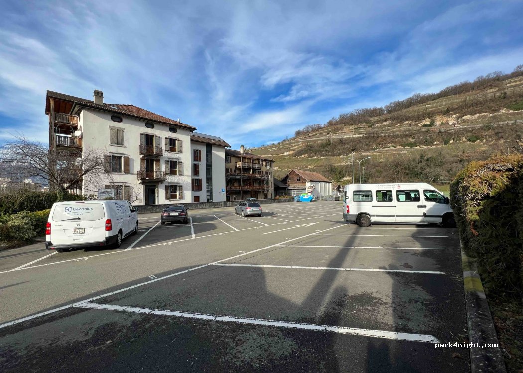 Ce lieu est parfait pour quelques heures afin de faire la visite du village qui est juste à côté de ce parking. Le stationnement de nuit est possible seulement durant les jours fériés (exceptionnellement) sinon il est préférable de ne pas rester car les places sont de base réservées aux cars scolaires du coin.