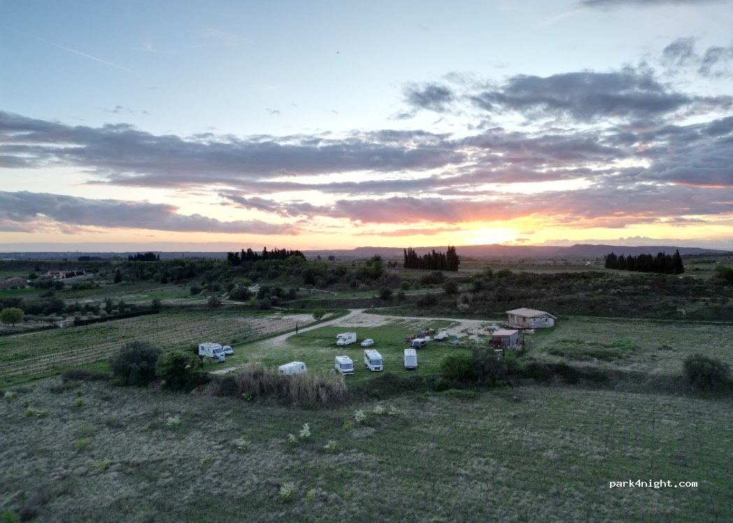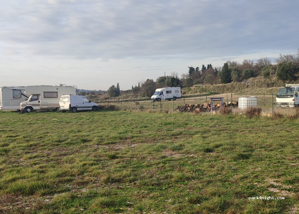 Parking dans un champ au calme pas un bruit 8 euros la nuit. Bien située à 10 minutes du pont du gard. Propriété très accueillant. Service de base.