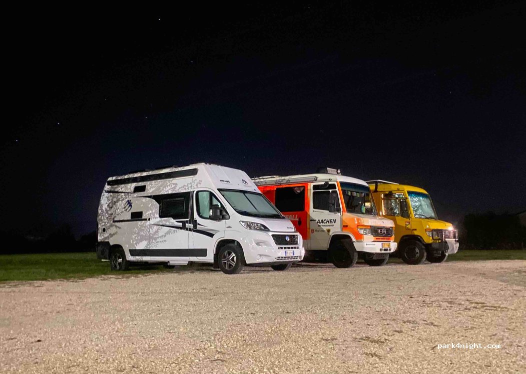 Schotterparkplatz am Straßenrand, es ist laut, führt aber zum Naturpark und man sieht einige Berge. Keine Verbotsschilder. Saisoncafe auch.