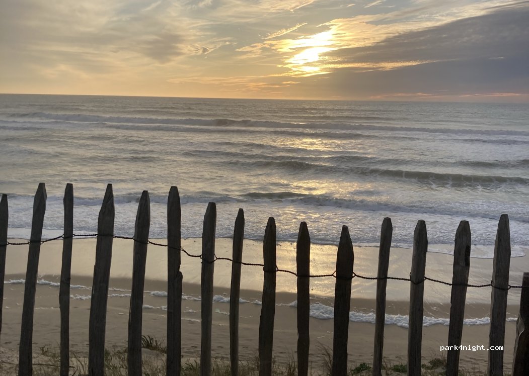 1ère nuit de notre périple avec une agréable surprise : parking très agréable, plus de limite de 1,90 m pour notre camping-car pour cette hors saison ! plage juste derrière la dune, piste cyclable allant au centre ville (10 mn à vélo) parfait pour pouvoir y rester plusieurs jours. A savoir aucunes commodités eau/vidanges.