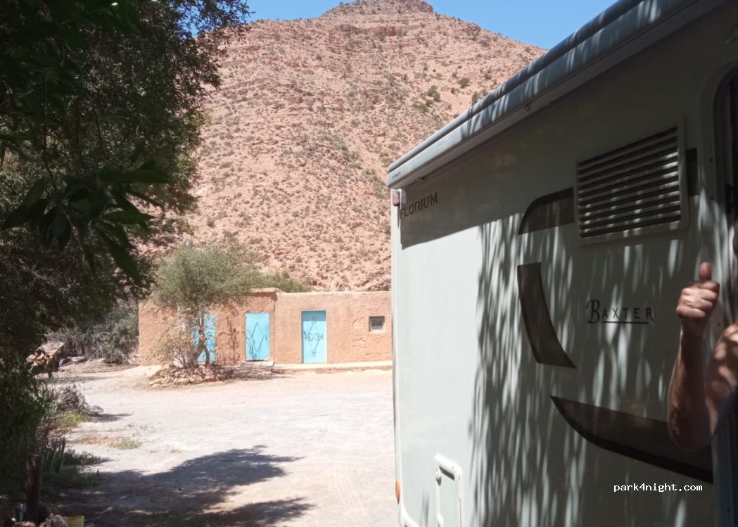 Camping cosy très rustique dans la vallée de l'A'baynou. Moussa et son fils Yassin ont récemment commencé à gérer ce camping. Il a été fermé pendant plus de 2 ans pendant Corona. Maintenant, Moussa et Yassin le reconstruisent progressivement. Ne vous attendez pas au luxe, mais à une expérience traditionnelle et brute. Vous pouvez demander à Moussa de dîner. Il se fera un plaisir de vous préparer un Tajine. nous en avons eu un avec de la viande de chameau. s'il vous plaît ne vous attendez pas au luxe. il y a des toilettes, mais ne vous attendez pas à une chasse d'eau, un seau d'eau fonctionnera aussi. l'eau courante est bonne pour les mains. Vous pouvez obtenir de la puissance, mais ne vous attendez pas à une grande puissance. Une douche est également possible, avec un peu de chance même avec de l'eau chaude. Vous venez ici pour la belle nature. Pas de possibilité de changer eau/toilette !