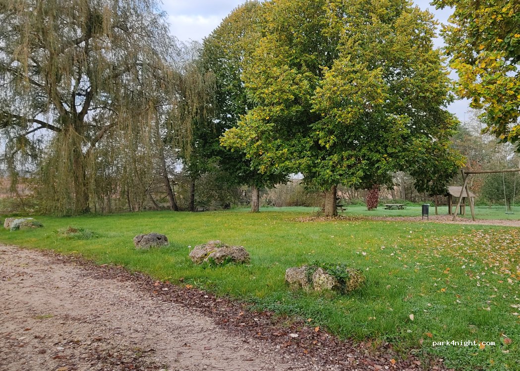 Effectivement, endroit avec tables de pique-nique aux abords de l'Armançon. Bien agreable pour une pause. Près d'une aire de jeux et d'un stade de foot. De grosses pierres ont été installées au bord de la partie en herbe. place pour 1 véhicule. Village agréable, et bonne boulangerie avec des pains spéciaux, pâté lorrain et grosse gougères, un délice...