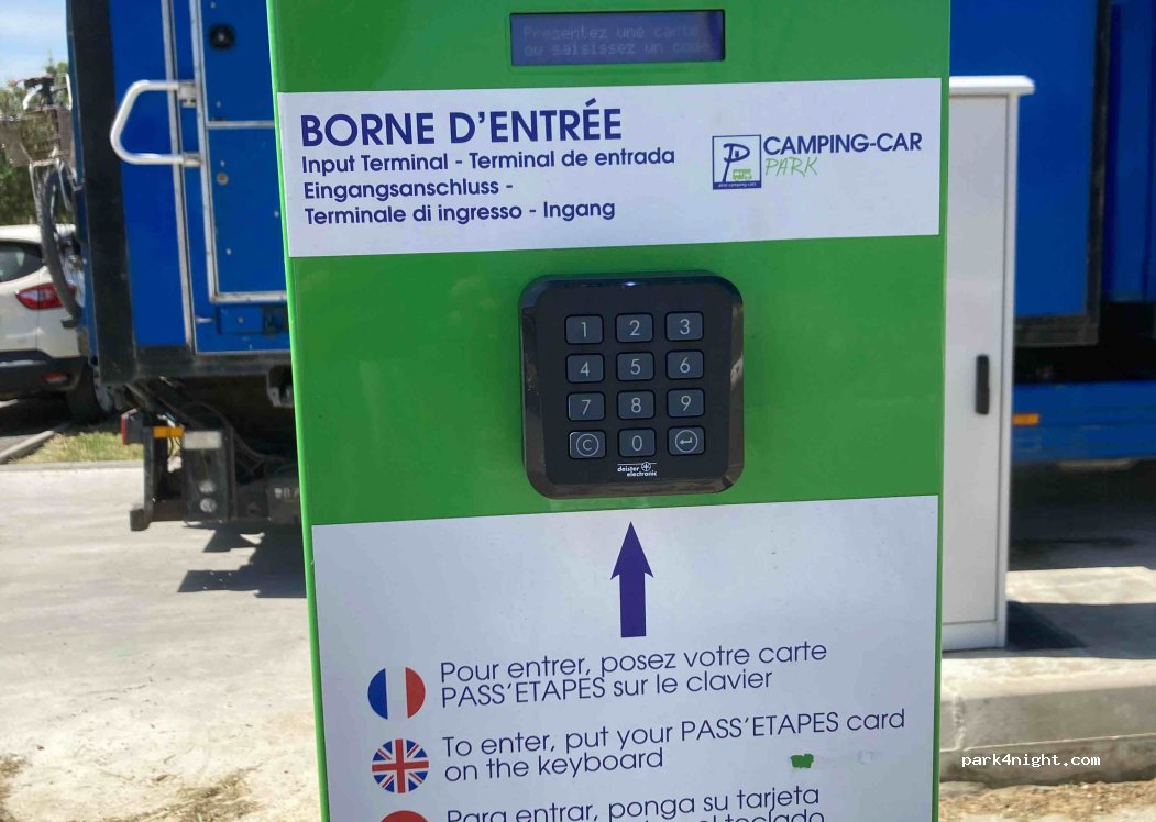 Même si l'aire de service est à l'extérieur du parking, impossible de l'utiliser si vous n'avez pas la carte du réseau CAMPING CAR PARK. Vous pouvez la prendre sur la borne à côté moyennant 5€ la carte 5€ les services. La commune ne souhaitant plus se soucier de cette aire de repos, a laissé la gestion à CAMPING CAR PARK, du coup on doit payer cher même pour utiliser que les services...