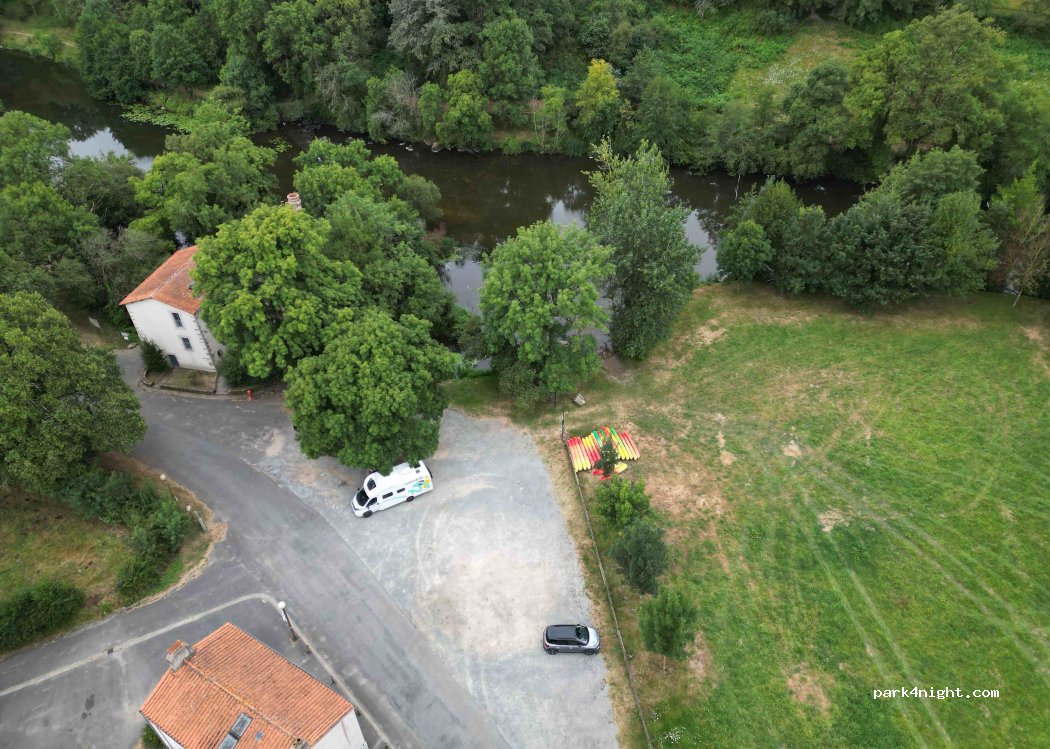 Petit parking au bord de la sevre nantaise avec table de pique-nique. Toilette au niveau de la base nautique. Attention elles sont fermés l’hiver.