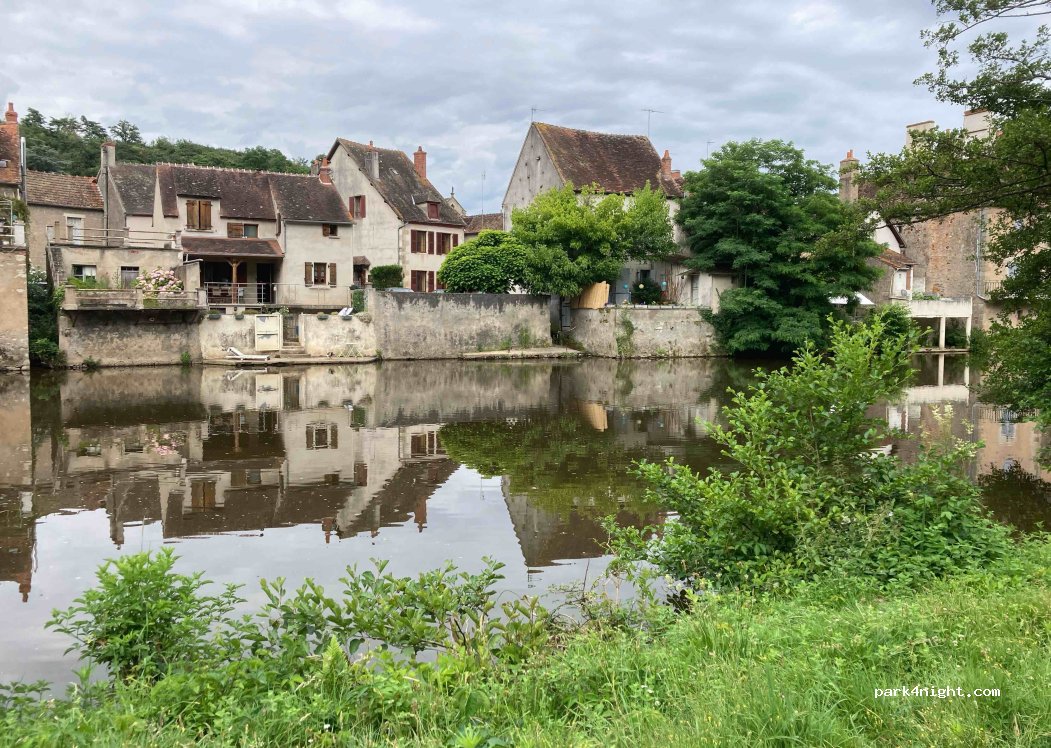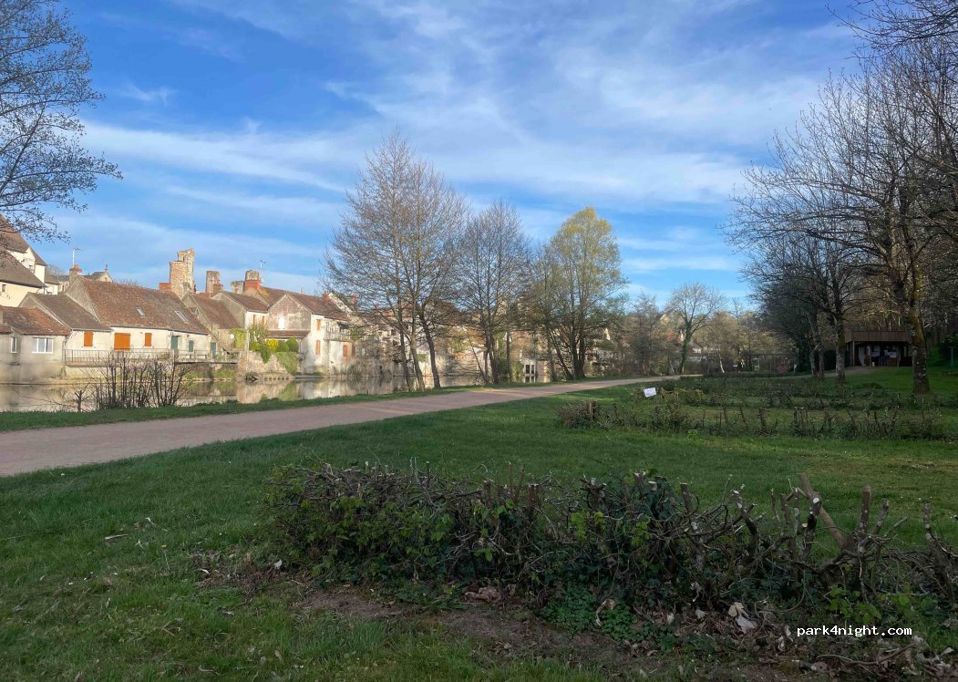 Nous y avons passé une nuit très tranquille au bord de l’Aumance. Tarif imbattable : 7,05€ pour un camping car et 2 adultes. Gratuit pour les chiens. Le village est charmant. En cette saison les commerces étaient bien actifs. Malheureusement on ne peut plus avoir accès au saut du loup car les propriétaires riverains ne laissent plus l’accès en raison du manque de civilité de certains.