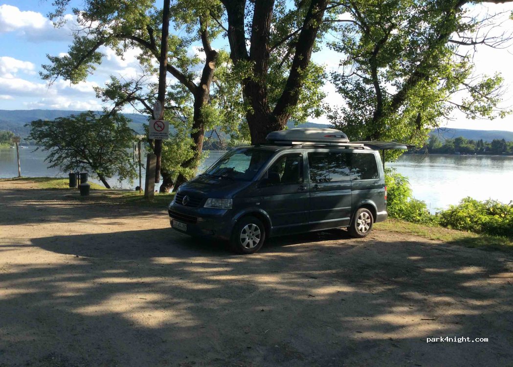 Platz mit grandioser Aussicht auf die Donau. Den Weg bis kurz vor den Strand nutzen. Hier gibt es 3-4 Stellplätze.. Der Strand ist in 50 Meter erreichbar. Wir standen unter der Woche allein dort. Einfache , aber saubere Toiletten in ca. 100m Entfernung. Tagsüber Trubel, abends wird es dann ruhig. Dorfmitte mit einem Spar Markt in 500 M..imbiss oder Restaurant gibts ebenfalls in der Nähe.