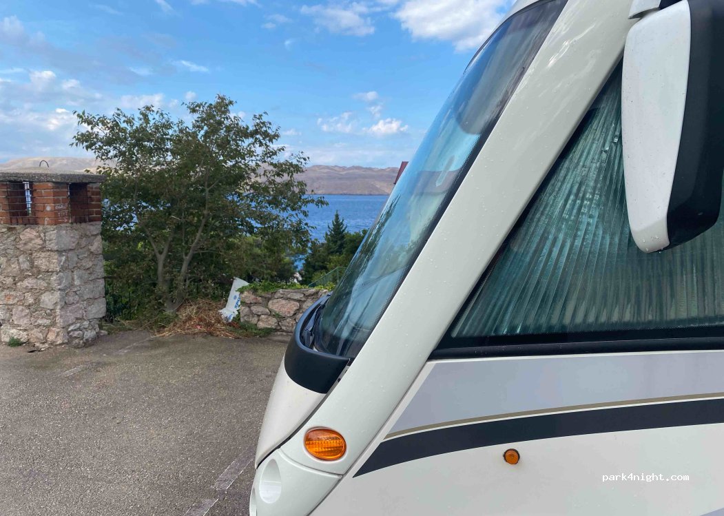 Konnten auf dem Hotelparkplatz, wie in den Kommentaren beschrieben, für 22 Kuna über Nacht stehen. War nicht viel los, sehr entspannt. Man sieht sogar das Meer und bis zum Hafen ist es nicht weit.