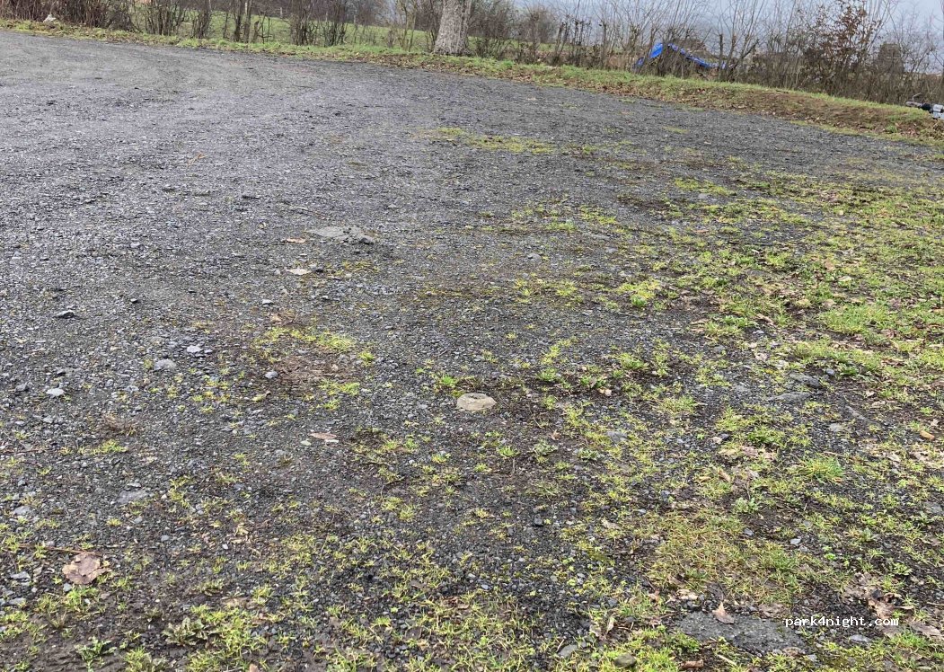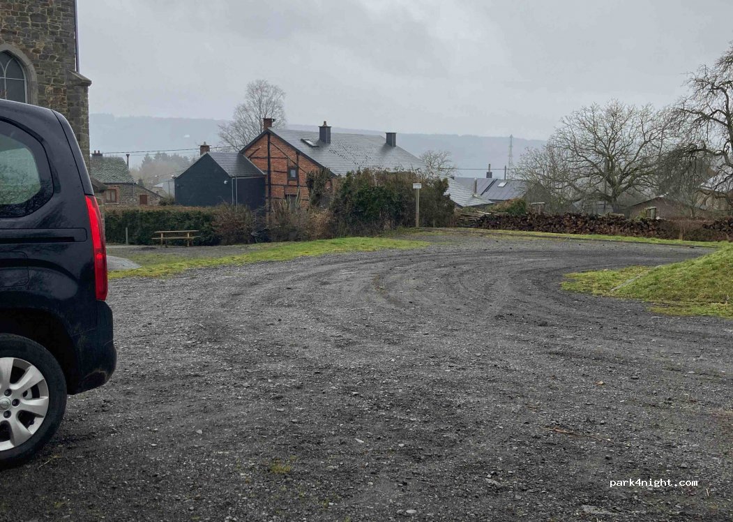 Parking pour les départs de randonnée à côté d’une petite église de village