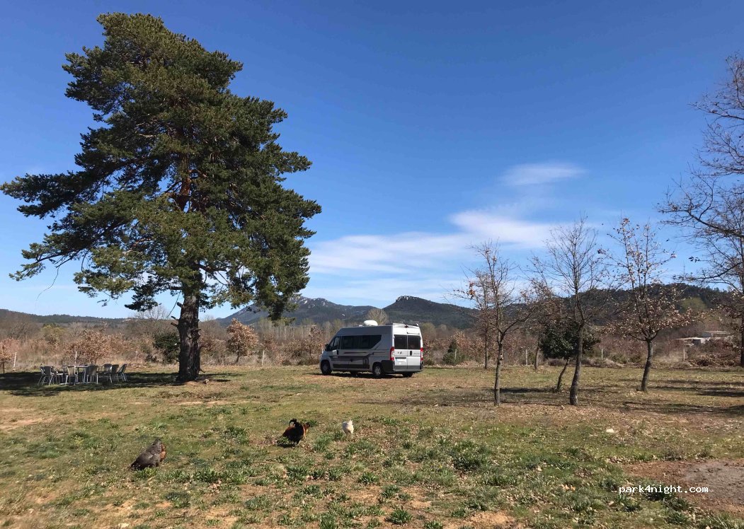Nous avons passé, mon chien et moi, 1 nuit chez Sylvie. Accueillis par ses 3 gentils chiens. Le cadre est "hors du temps" proche d'1 chemin pour de longues balades aux senteurs de thym. L'endroit est très calme et les emplacements bien espaces pour disposer d'intimité. Les chiens sont là pour protéger le domaine et font leur travail avec quelques aboiements la nuit. NB réseau Orange très moyen.