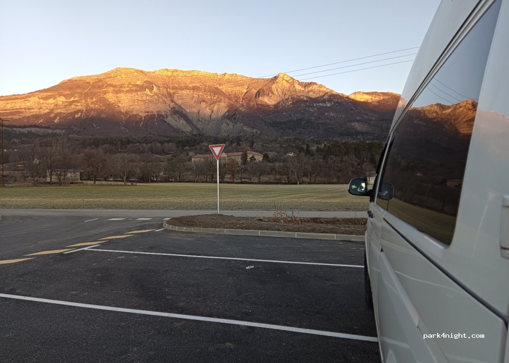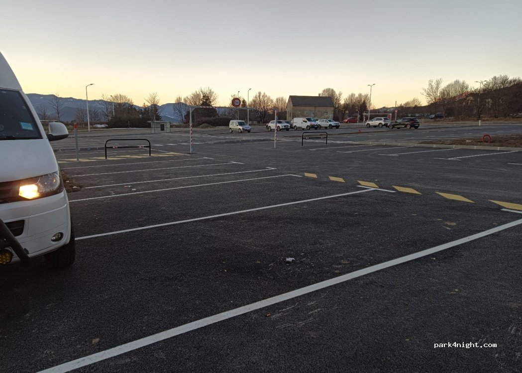 Pas loin de la route mais parking parfait pour passer une nuit en direction de l'Italie.