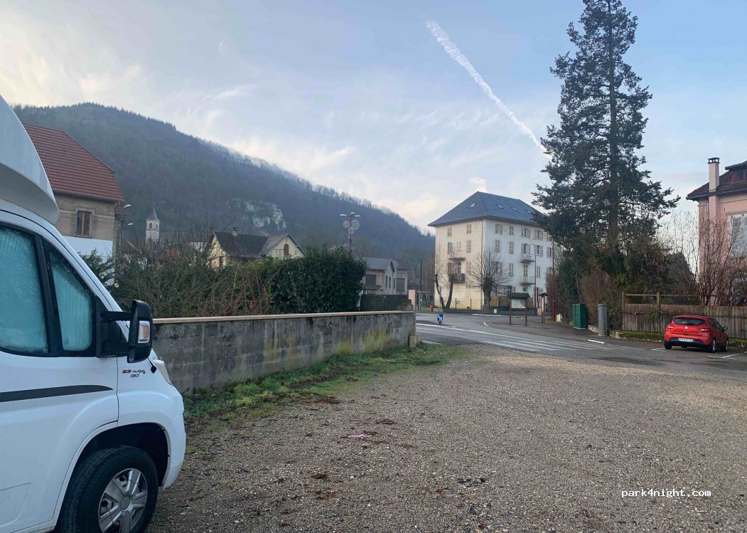 Grand Parking centre village bien pour la nuit proche lac de Paladru.