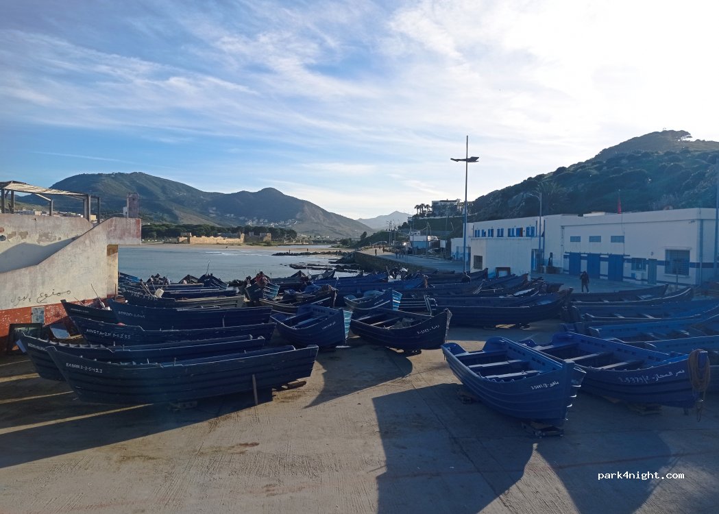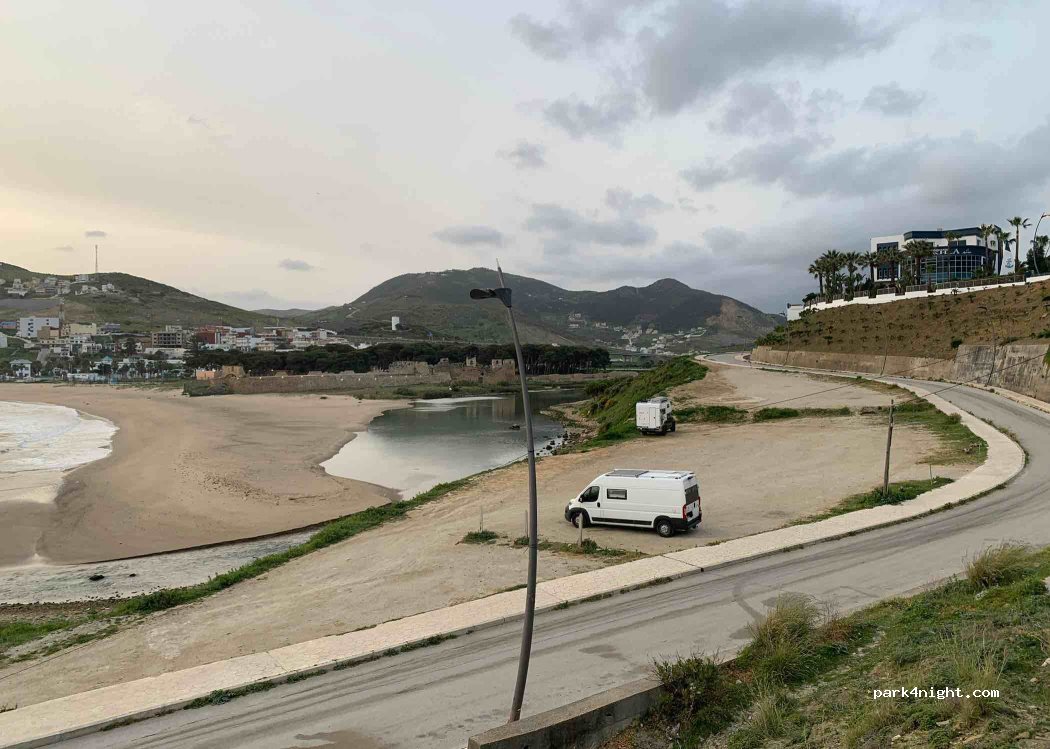 Wir sind um 23 Uhr angekommen, haben uns auf den Parkplatz gestellt und nach 30 Minuten hat ein sehr freundlicher Herr vorsichtig geklopft und um die 30 dh Parkgebühr gebeten. Es ist ein empfehlenswerter Platz für eine Übernachtung in der Nähe des Fährhafens. Am Morgen hat man einen schönen Blick auf die Bucht. In der Nähe gibt es einen Bankautomat und eine Apotheke die um 23 Uhr noch auf war.