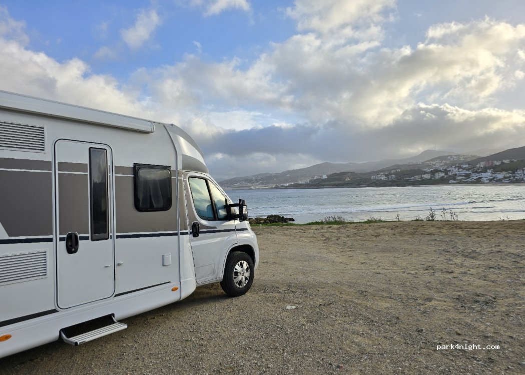 Stayed here overnight security from the local police. And nearby military barracks on the hill. The usual guy turns up and asks for 30 dirham for overnight, which is a great price considering the location and it’s only 7 miles away from Tangier med so a great place to stay for the first night before your epic trip.