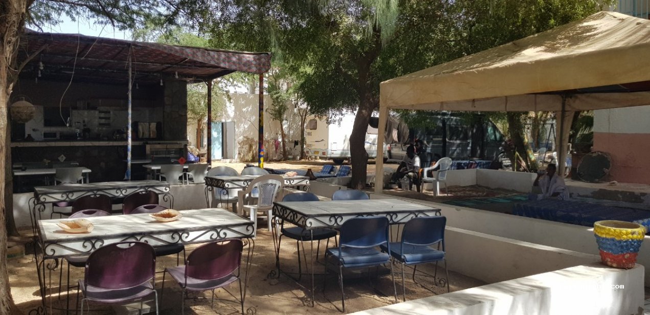 Africa Escale team welcomes nomads in motorhomes, 4x4s, motorcycles or anything in between. The car park is in a shaded, spacious back yard of the hostel building. Rooms are also available as well as a restaurant at reasonable prices. The camping has a friendly resident German Shepherd and all traveller pets are very welcome. Night time guard and cameras are present throughout the property so you can sleep in complete peace of mind. Overall - secure and ideally located in the Embassy district with all amenities, many shops and restaurants within a minute's walk. Perfect for a quiet stopover on your trip to Senegal, Morocco or Atar. The team can advise you on the best excursions in Mauritania. It also offers to help travelers with vehicle maintenance by putting them in touch with reliable mechanics. In short, the essential address in Nouakchott. A little extra: His brother has a campsite/inn (INIMI) in Adrar region and offers excursions with or without a guide. All means of payment are accepted.