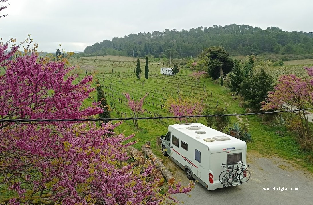 Dar las gracias a Rémi y Veronique por su amabilidad y hospitalidad, pasamos la noche del 14 de julio muy tranquilos. Nos hicieron cata de sus vinos ecológicos y compramos mermeladas. Donativos para agua y electricidad. No hay posibilidad de vaciado. Gracias de corazón.