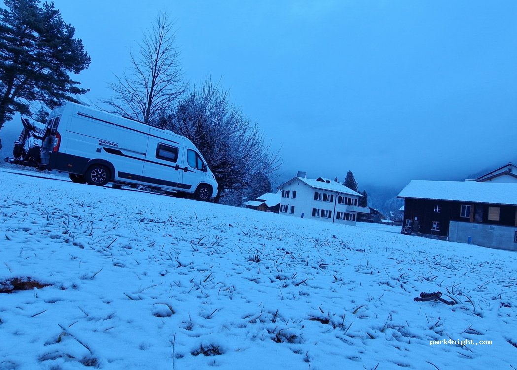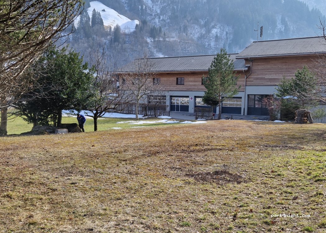 Perfekter Ort für eine Nacht. Auf dem Platz sind zwar Markierungen, aber wenn der Platz nicht voll ist kann man sich den schönsten aussuchen. Es gibt für Camper extra Müllentsorgung und ein Gemeinschaftsbad (leider ohne Dusche). Leider bis Abends viel Verkehr durch die Militärfahrzeuge. 5 min nach Töniberg zur Gondel (12CHF) -Tageswanderung zur Martinsmadhütte WUNDERSCHÖN!!! Vor allem der Abstieg