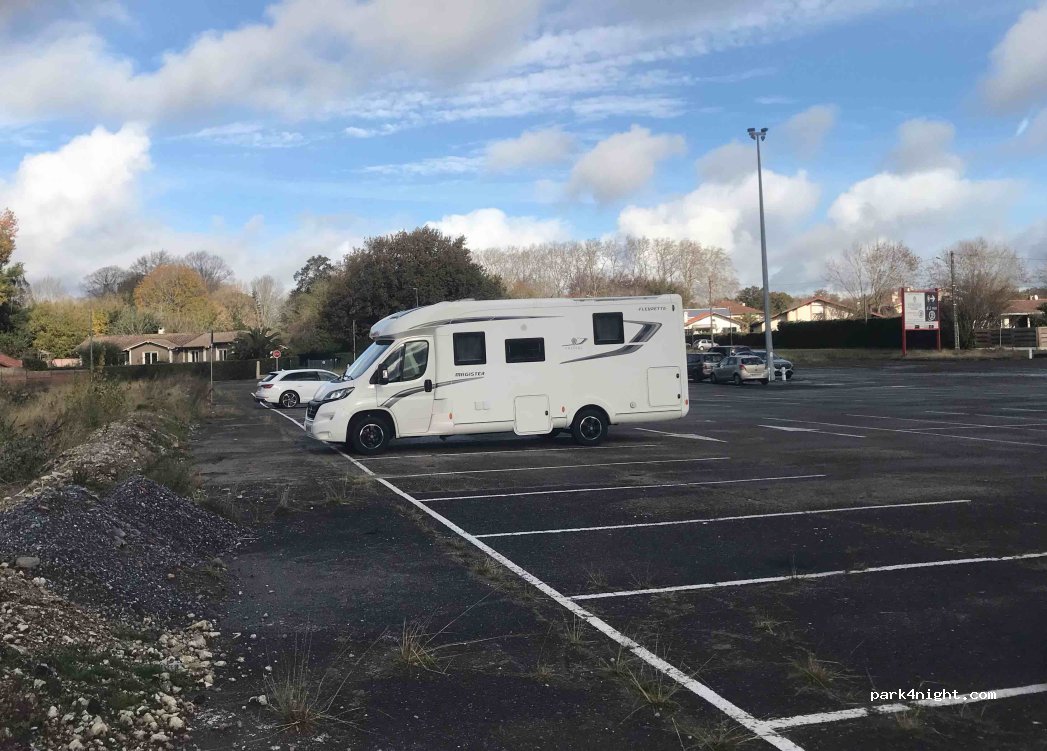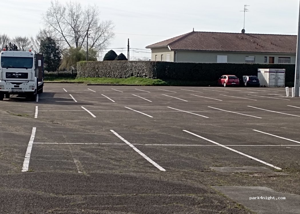 Parking spacieux pour gros gabarit sur enrobé relativement plat. Pas d'ombre. Bien pour une nuit.