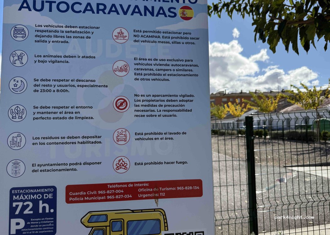 Buena área,tranquila y con todos los servicios y gratis. Gracias al ayuntamiento de Caudete
