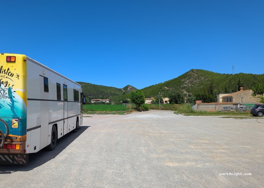 Idéal pour passer la nuit au calme, un grand parking accessible en gros navire. Avec quelques arbres pour être à l’ombre sur une place municipal avec aire de jeux pour les enfants juste à côté.