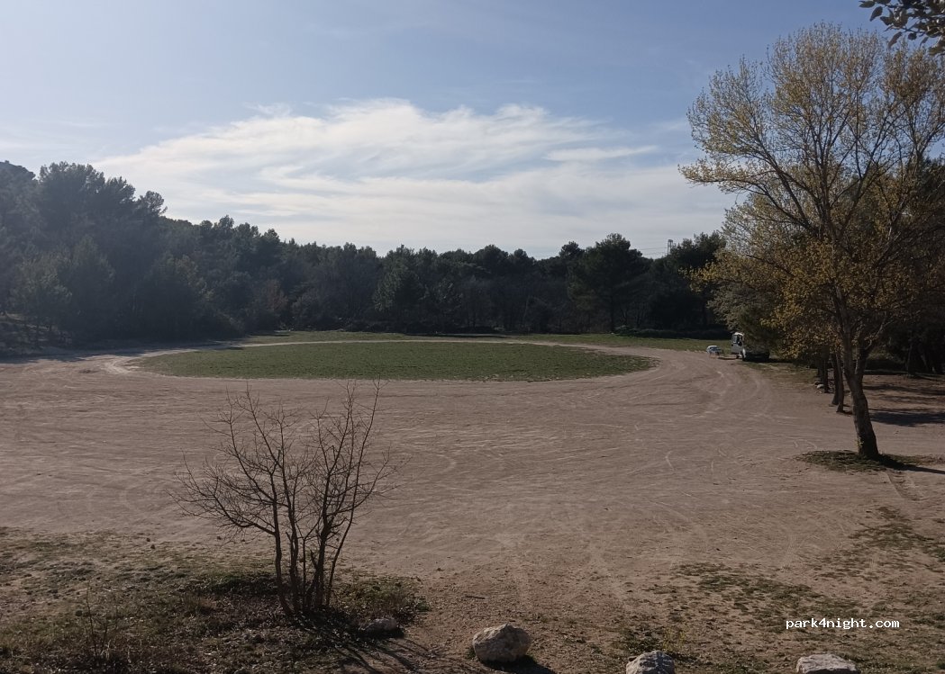 Le parking du Pilon du Roi est en terre plate sans restriction de hauteur.