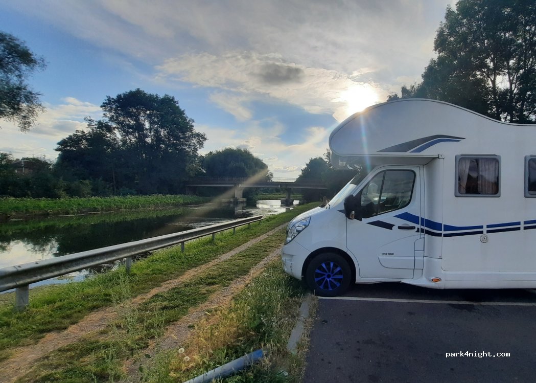 Parkplatz direkt am Kanal. Wir haben hier eine ruhige Nacht verbracht. Morgens kommen Angler und Spaziergänger. Neben dem Parkplatz gibt es einen Parcours/Spielplatz mit einer Bank. Man kann auf beiden Seiten des Kanals sowie in den hübschen umliegenden Dörfern gut Spazierengehen oder Fahrradfahren. Die einladend aussehende Brasserie auf der anderen Straßenseite hatte leider geschlossen.