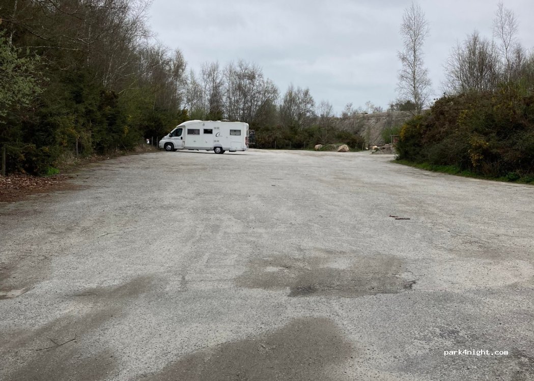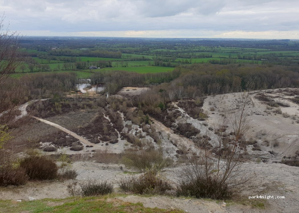 Simple parking en partie goudronnée, pas de barre de hauteur de ce côté-ci de la route. Idéal pour visiter le terril. 2 circuits de randonnée, 1 pour faire le tour des 2 terrils, 1 pour faire le tour du lac. Ces 2 circuits font 8 km environ au total. Il est également possible de monter au terril principal qui culmine à 113m, ce qui en fait le point culminant de la Loire Atlantique.