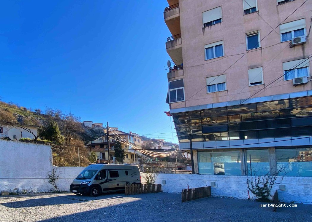 Surprisingly quiet for the city parking, even on Saturday night. Very friendly attendant as other campers already mentioned, who speaks Italian. Water, electricity and very fast WiFi. Short walk up to Rozaga Castle. Wish there were more places like this in Albania.