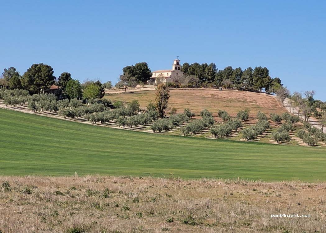 Superbe endroit pour passer une nuit, jolie vue sur les champs d oliviers. A l'abri des regards et en retrait de la route, cul de sac menant à une chapelle. Juste un chien aboyant jusqu'à tard.