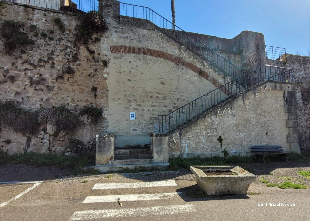 Confermato ad oggi: parcheggio gratuito, in linea, comodo per le manovre (noi viaggiamo con un camper di 7m). Siamo arrivati domenica pomeriggio e abbiamo passato una nottata molto serena. La strada è assai poco frequentata, sia da auto che persone, ma il paese è tranquillo. Ci sono delle scalette nelle mura antiche che permettono di salire al centro storico in 5 minuti. Ottimo punto.