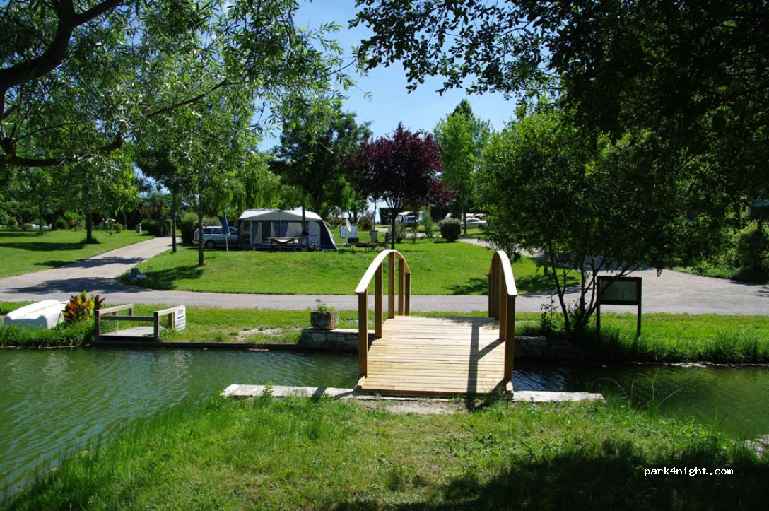 Accueil très sympathique. Cadre bucolique. Sanitaires en très bon état. Machine à laver et à sécher le linge. Dans le camping, tarif accueil camping-car, 14 € pour 2 personnes avec eau et électricité. Une borne se situe aussi à l'extérieur du camping, mais était hors d'usage avec fosse d'eaux noires saturée. Possibilité d'avoir des repas sur commande mais pas de véritable restaurant.