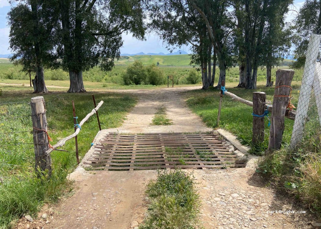 C’est effectivement un très bel emplacement de pleine nature très calme car hors zone urbaine. Comme c’est pour un espace de pâturage naturel, il y a un petit passage canadien (3 m de large environ) à l’entrée pour éviter que les troupeaux ne s’échappent par là. Je suis passé avec mon camping-car de 2,25 m. Bon séjour ici si vous venez.
