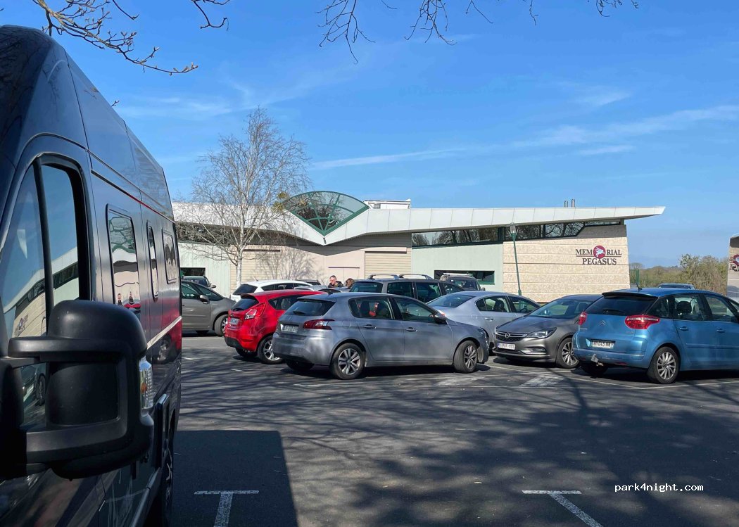 Es handelt sich um den Parkplatz des Pegasus Memorial Museums, der Eintritt ins Museum kostet 4 Euro, lohnt sich bei geschichtlichem Interesse, Hunde sind erlaubt. Es gibt keine einschränkenden Schranken.