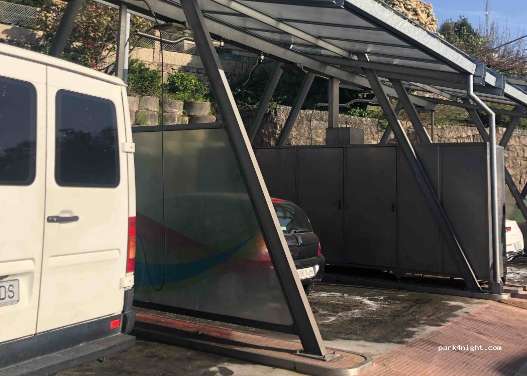 Tiene una zona de lavado sin techo pero no tiene escaleras laterales ni rampa ni nada, así que solamente se podria lavar por los laterales...