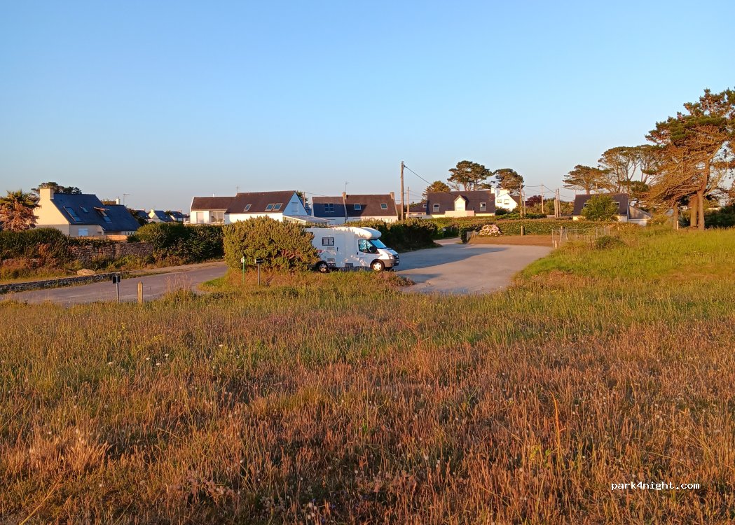 Parfait pour y passer la nuit. Très belle vue et départ pour l'île Wrac'h au bout de la plage. Par contre réveil à 8h30 par un camion venu vidé les containers (un vendredi matin).