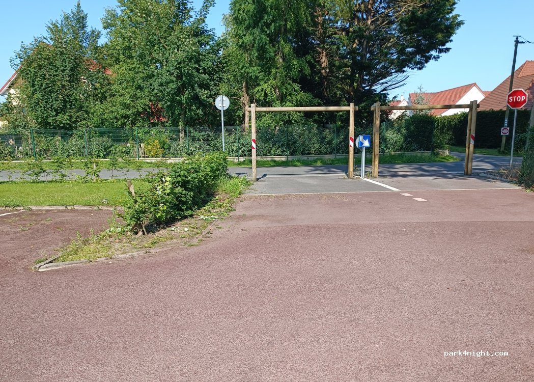 Parking avec une trentaine de places . Hauteur 1.90 m pour la barrière . Assez calme et mini parc de jeu pour les enfants
