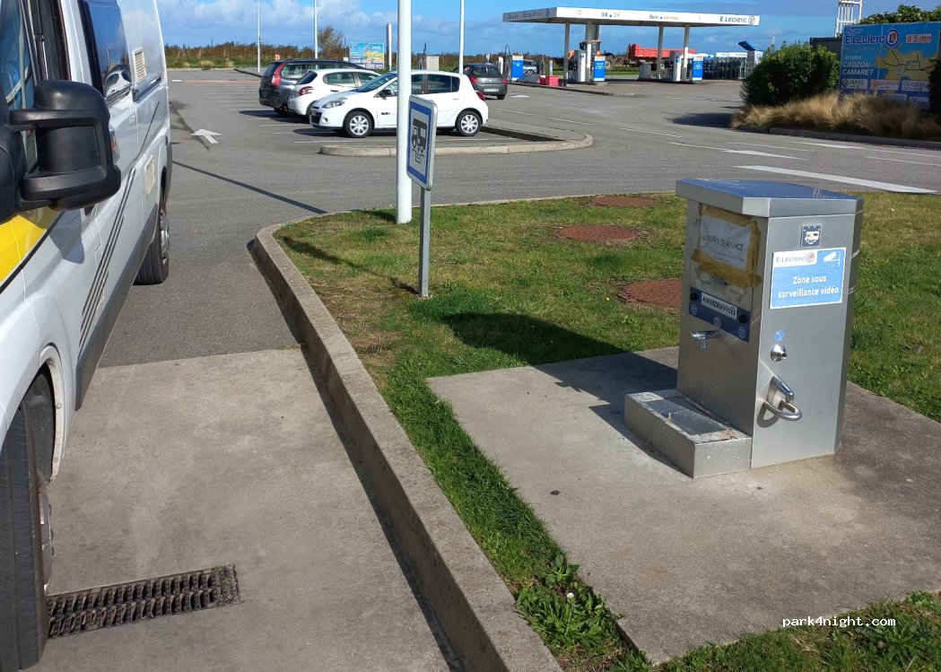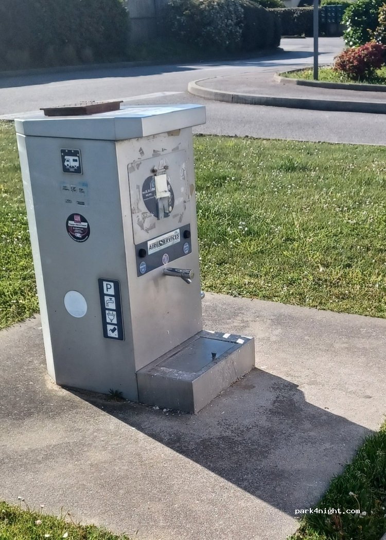 Juste pour vidanger eau grise et noire, pas d’eau ! Dommage, car il y a des beaux emplacements pour Cc avec le super marché à côté .