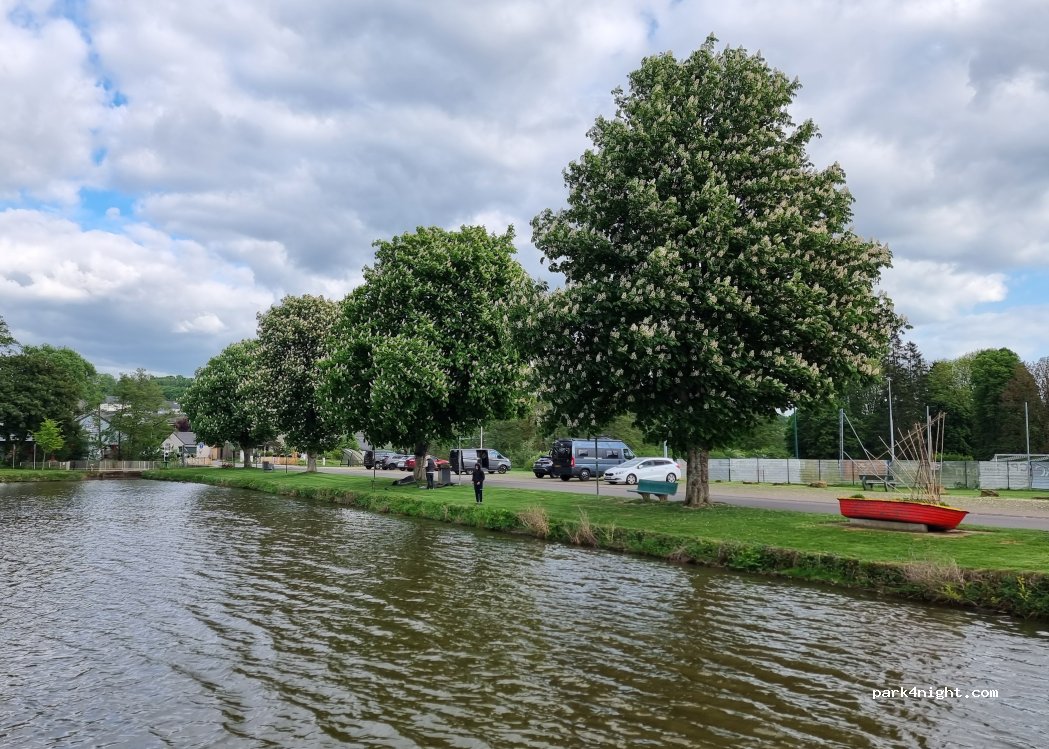 Week-end de l ascension, endroit calme. Nous étions 3 camping cars mais il y a largement de la place. Le pain frais est à une dizaine de pas et si vous suivez le chemin de halage il y a un parcours de santé, une jolie promenade ( chèvres, moutons, canards) puis arrivés au centre une superbe aire de jeux pour les enfants ( tyrolienne, araignée, balançoire..) Pause idéale avec des enfants !