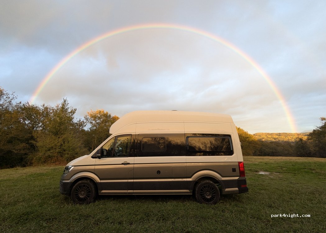 Super spot pour une nuit. Jolie vue sur le levée du soleil. Bien se mettre à côté de l’arbre. Beaucoup de fougère en saison été. La route pour y aller est facile praticable en van par temps sec. Cohabitation facile avec des inconnus pour 2 vans max. Arrivée tôt car spot demandé (à préserver tant qu’on a encore le droit dormir là)