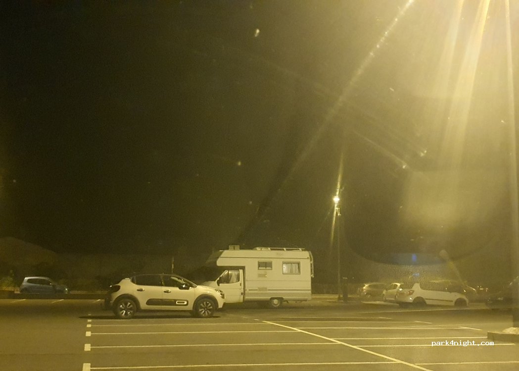 Parking public, plutôt calme la nuit, quelques mouvements de voitures mais pas gênant. Pas de services, uniquement stationnement, gratuit de 19h à 9h puis en journée 1€/h.