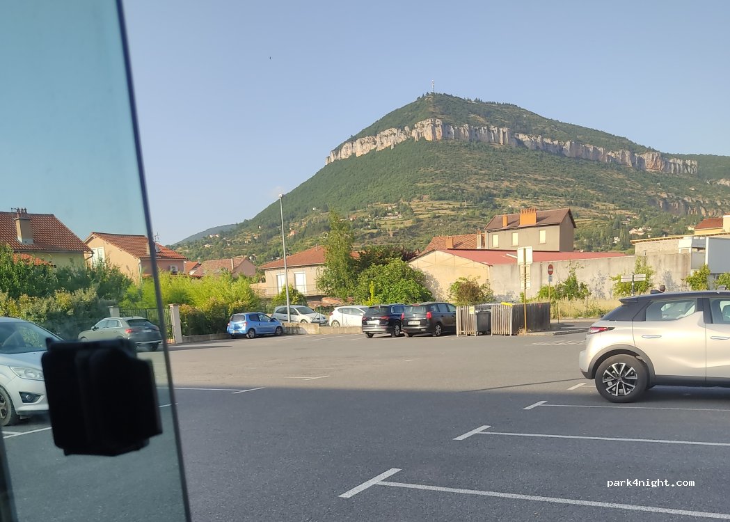 Aparcament a 5 minuts del centre de Millau. Gratuit a la nit de 19h a 9h mati. Altres hores 1eu hora. Nit tranquila i sense gens de soroll, amb molt poques caravanes. Us aconsellem anar a veure el pont des del mirador.