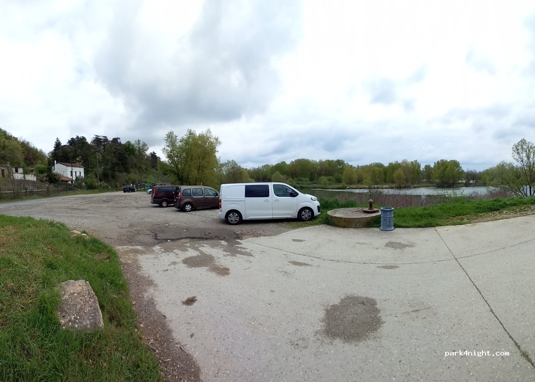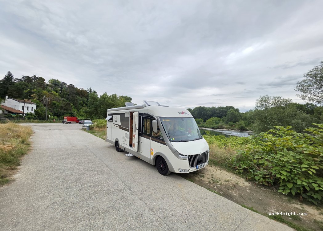 Direkt am Wasser mit kleinen Stromschnellen und einem etwas größeren. Hinter dem Platz fährt ab und an die Eisenbahn, was zu ertragen war. Am Wochenende und bei gutem Wetter sind viele Jugendliche hier, bleiben aber ruhig. Wir sind mit unserem 8-Meter-Wohnmobil gut hierher gekommen und der Platz ist recht eben, wenn man sich gut hinstellt. Die Polizei fuhr vorbei, sprach uns aber nicht an.