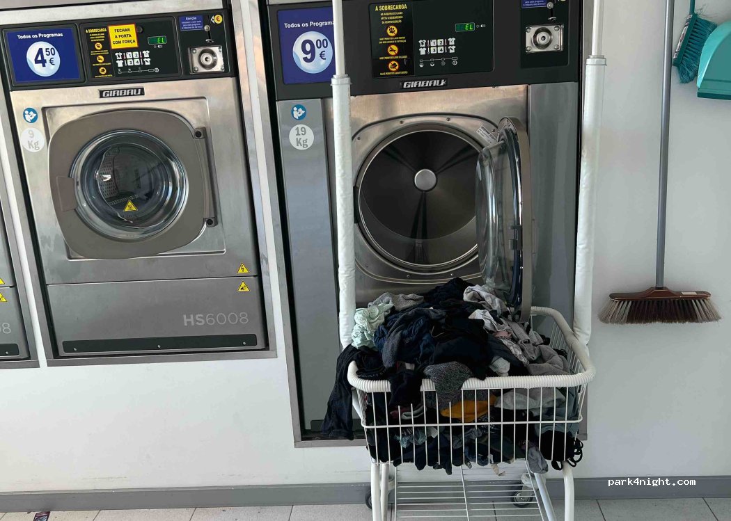 Lavandaria Self Service Clean2you Azurva - efficient launderette, machines very clean. 60, 45, 30 degrees and cold wash program. 2x 9kg machine, 1x 19kg. 3x 19kg dryers. Big plus point, because MTV is running on the small TV, which at least throws children from the 90s back in time a few years :D we just parked below on the side of the road, there is not much going on. There is a small supermarket opposite, and there is a coffee machine in the salon. Detergent included in the machine.