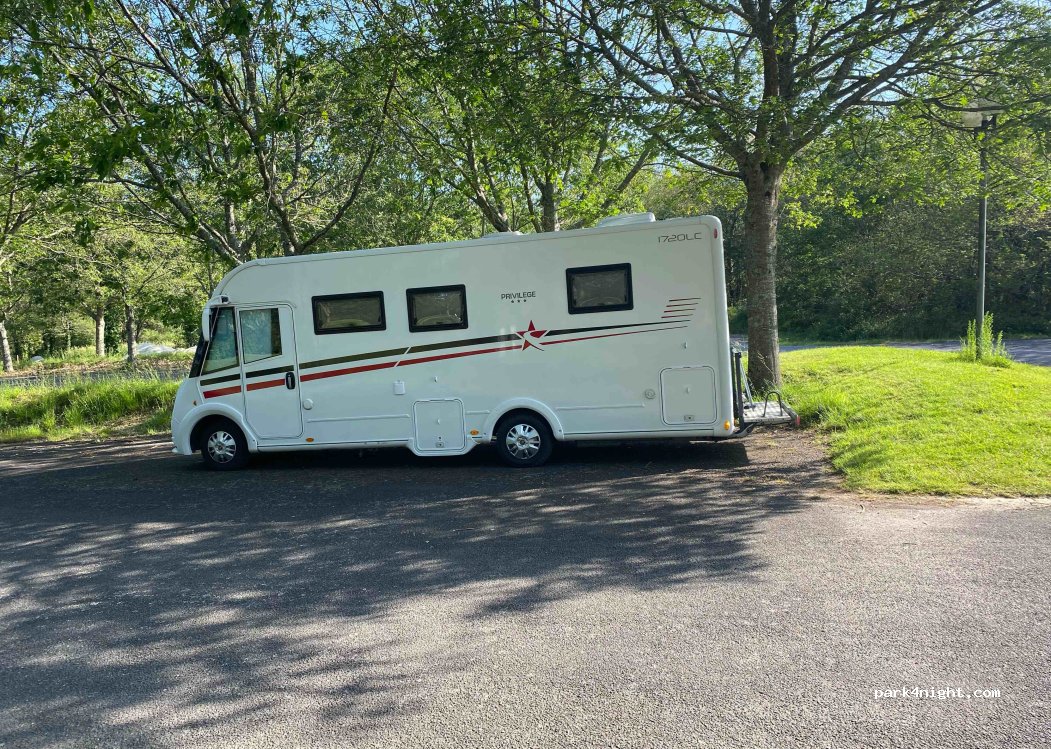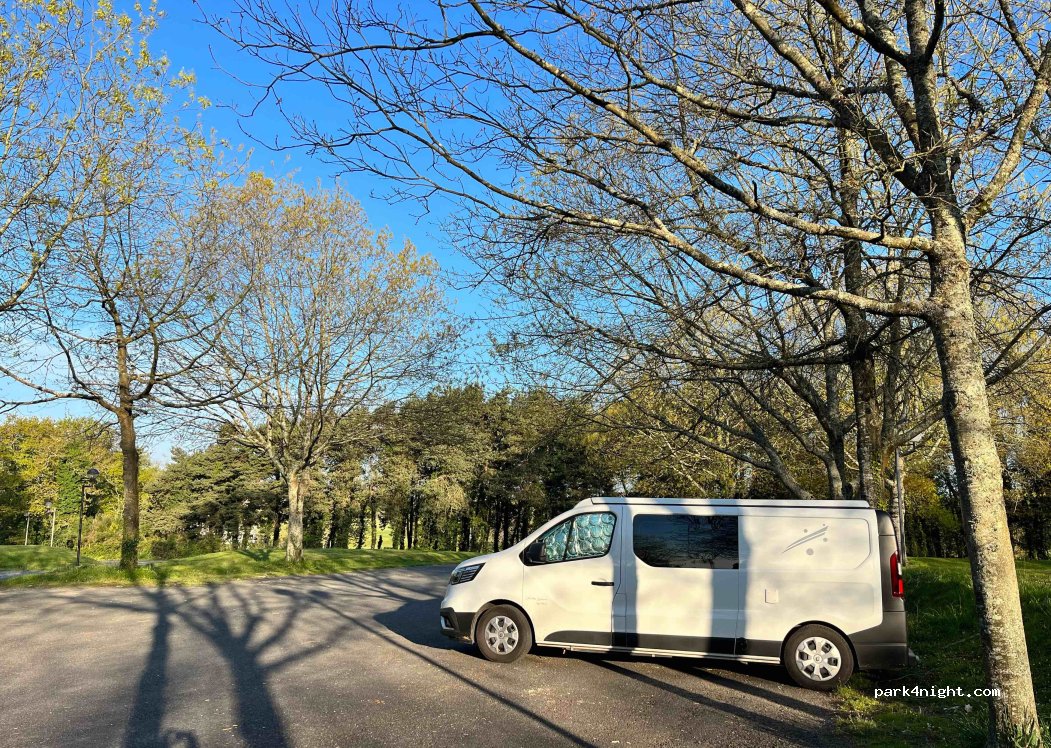 une très bonne nuit sur ce parking qui est assez vaste et plat. de plus le matin, petite pluie qui nous a évité d'être réveillé par les golfeurs. très bon spot.