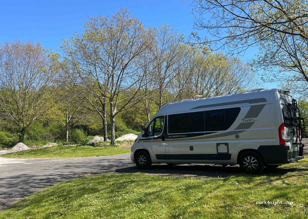 Nous avons passé une nuit très calme. Parking plat et ombragé. Impression d'être en pleine nature . Nous étions seuls mais nous nous sentions en sécurité. Nous recommandons .