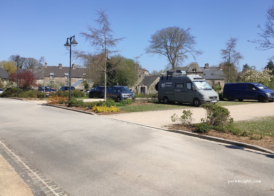 super bon endroit comme on en trouve rarement petit coin de paradis avec un joli parc très calme j'ai passé une nuit superbe réveillé avec le bruit des petits oiseaux aucune commodité mais vous êtes proche de tous les commerces convient plutôt à des petits camping-car ou fourgon aménagé car les places sont des places de voiture