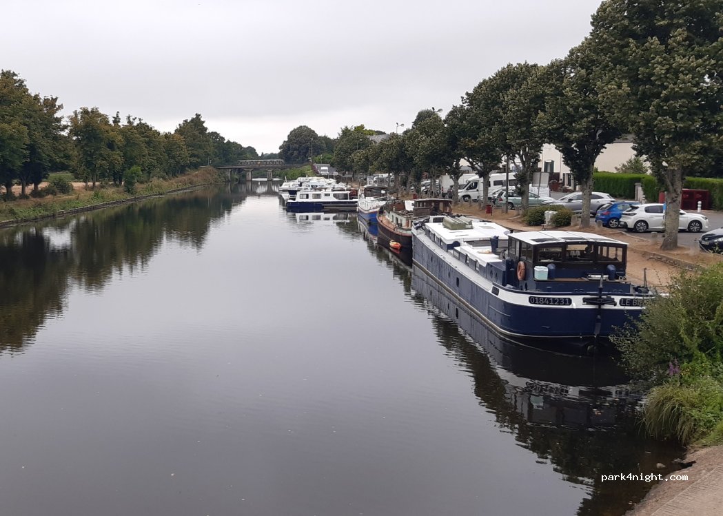 - Points positifs : endroit calme et emplacements bien délimités, spacieux et plats. Très bien situé : à 50 mètres du canal de Nantes à Brest, 200 m du port, 400 m du château et très proche du centre ville. - Points à améliorer : entretien paysager ; et INDISPENSABLE : électricité !! Nous y serions restés une journée supplémentaire la ville de Blain présentant de nombreux atouts touristiques.